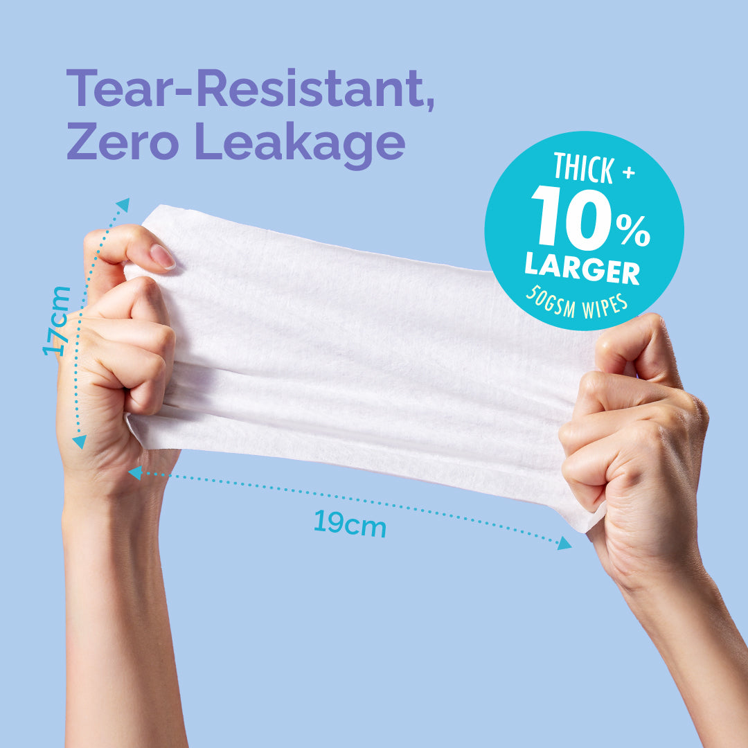 Hoppi™️Premium Sensitive Skin Wipes are specially designed for newborns and clinically tested by German dermatologists with Dermatest® 5-star certification, guaranteeing safety for sensitive skin, including babies. With 3.5x more hydration from over 99% pure EDI water, they are free from parabens, alcohol, and harmful chemicals. Gentle enough for oral use, non-irritating for daily use, and strong with a tear-resistant, zero-leakage design.